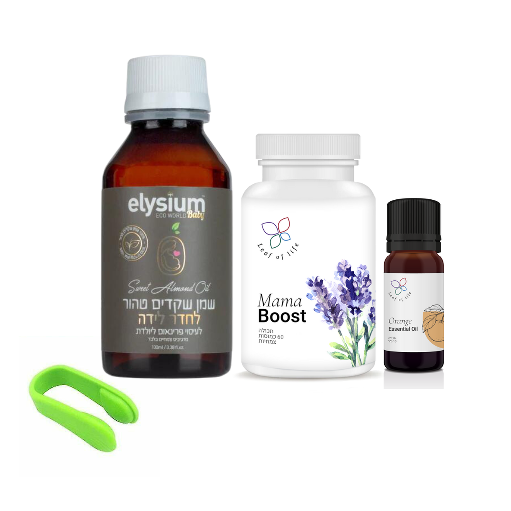 ערכה לתיק הלידה מכילה ארבעה מוצרים איכותיים וחשובים ללידה רכה וטובה: